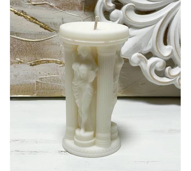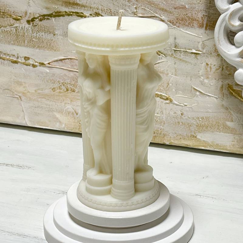 Rankų darbo sojų vaško žvakė Graikijos skulptūrų formos.