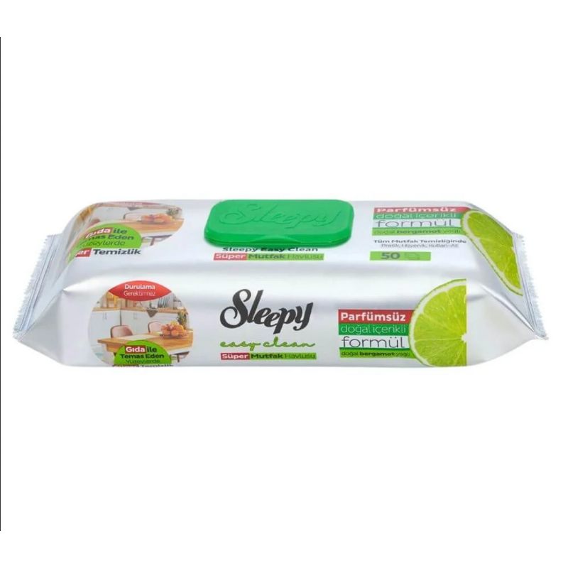 Drėgnos servetėlės Sleepy maistiniams paviršiams yra saugios ir galima drąsiai valyti stalus, lentas, šaldytuvus. Efektyviai pašalina riebalus, dulkes, maisto likučius. Be agresyvių priedų - palieka tik švarą ir gaivą, be pavojingų likučių.