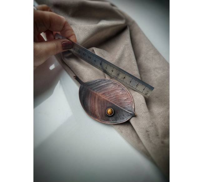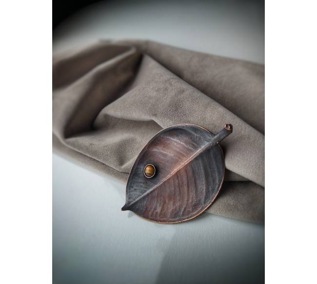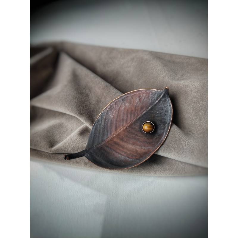 Tikras fikuso lapelis, varis ( vienpusis padengimas elektroformavimo būdu), juodoji patina, natūralus akmuo - tigro akis, lakas (segės nugarėlė)