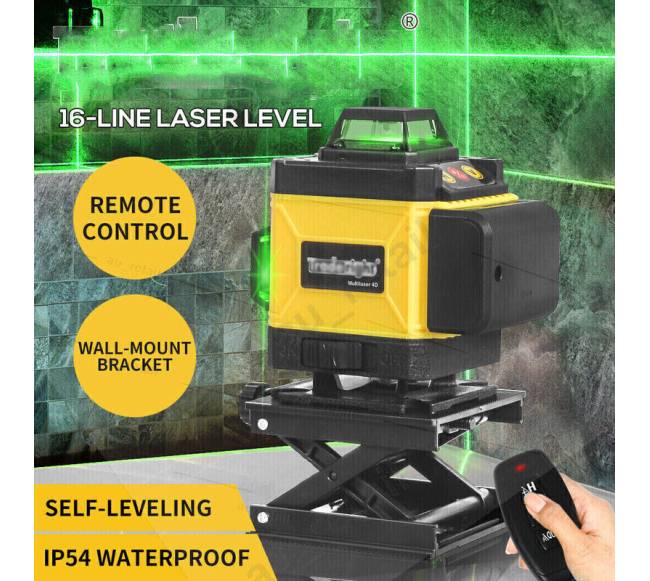 Užtikrinkite nepriekaištingą tikslumą kiekviename statybos ar renovacijos projekte. Šis profesionalus 4D lazerinis nivelyras naudoja 360° technologiją ir projektuoja 16 žalių lazerio linijų, kurios leidžia vienu metu matyti horizontalius bei vertikalius lygius ant visų kambario sienų, grindų ir lubų.