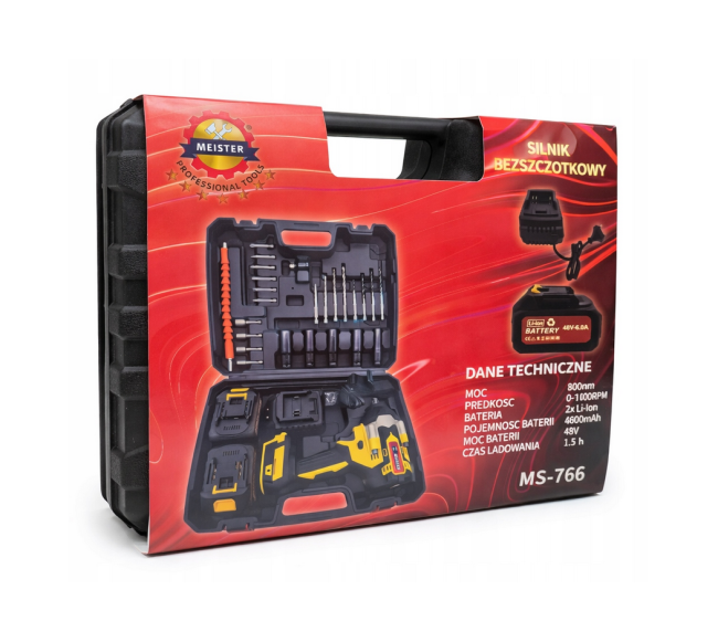 Patogus ir galingas akumuliatorinis suktuvas-gręžtuvas MS-766 – puikus pasirinkimas tiek namų meistrams, tiek profesionaliam naudojimui. Komplekte rasite viską, ko reikia įvairiems gręžimo ir sukimo darbams.