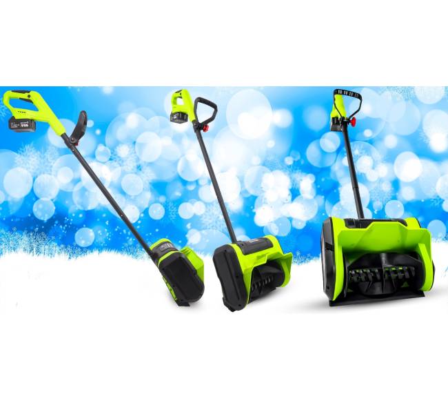 Akumuliatorinis sniego valytuvas su dviem akumuliatoriais