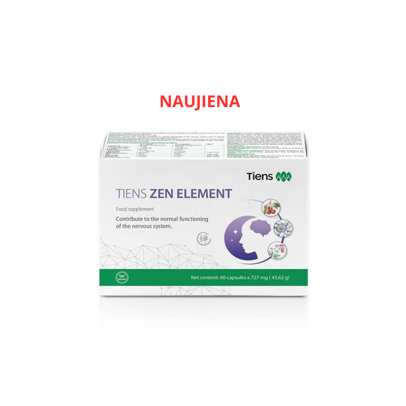 TIENS „ZEN ELEMENT“ nervų sistemai – tai unikalus maisto papildas, sukurtas remiantis natūralių augalinių ekstraktų ir svarbiausių nervų sistemai vitaminų bei mineralų deriniu. Papildas padeda palaikyti emocinę pusiausvyrą, gerina miego kokybę, mažina įtampą bei nuovargį. Puikiai tinka tiems, kurie patiria kasdienį stresą, dirba protinį darbą ar turi sunkumų užmiegant.