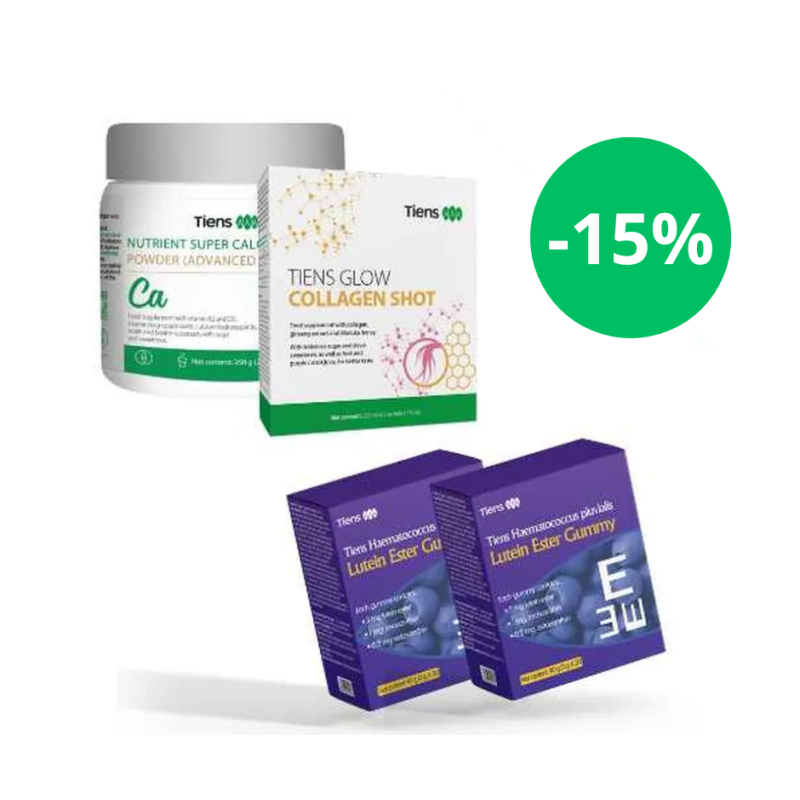 TIENS rinkinys šeimai – tai subalansuota kasdienės sveikatos formulė visiems šeimos nariams. Rinkinį sudaro kalcio, kolageno ir akių natūralūs maisto papildai, kurie padeda stiprinti kaulus ir imunitetą, palaiko odos elastingumą, regėjimą ir bendrą organizmo gyvybingumą. Puikus pasirinkimas šeimai, norinčiai paprastu ir veiksmingu būdu rūpintis sveikata kasdien.